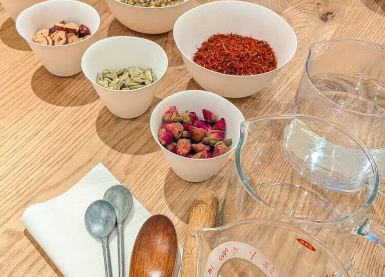 チャイの歴史や世界の文化に触れながら、季節に合わせた養生(整え方)を学び、よもぎを使った一杯のデモンストレーション、